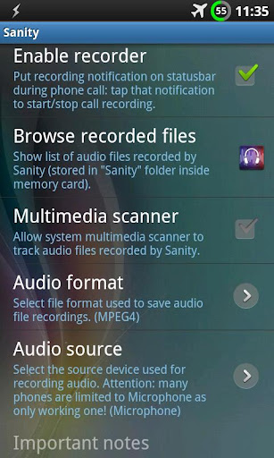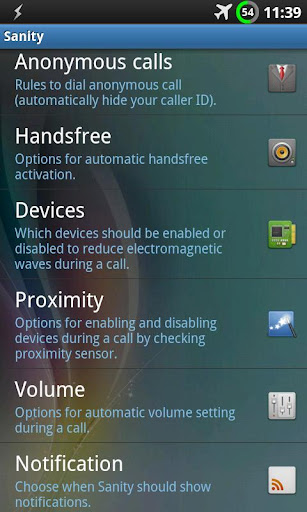 Ψάχνοντας στο Market έπεσα πάνω σε μια πρωτότυπη εφαρμογή. Τη δοκίμασα λοιπόν 2 εβδομάδες και σας την παρουσιάζω. Πρόκειται για το Sanity. Μια εφαρμογή ανοιχτού κώδικα η οποία απενεργοποιεί όλες τις συνδέσεις που έχουμε ανοιχτές (WiFi, BT, GPS, Data) κατά τη διάρκεια μιας κλήσης.