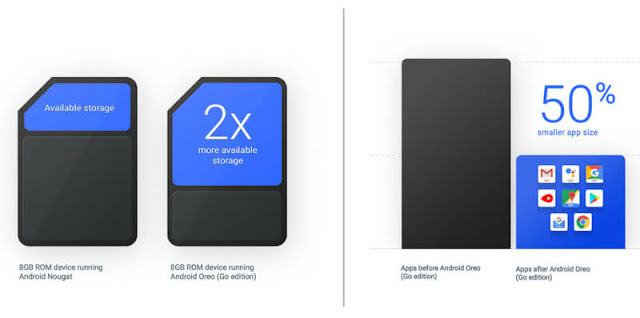 Το Android Oreo (Go edition) όπως ονομάζεται κανονικά, έρχεται για να προσφέρει μία καλύτερη εμπειρία χρήσης σε συσκευές από 512MB έως 1GB RAM και διαθέτει ειδικά φτιαγμένες εφαρμογές για αυτό το σκοπό. Σύμφωνα με την επίσημη σελίδα του τα βασικά χαρακτηριστικά του είναι: