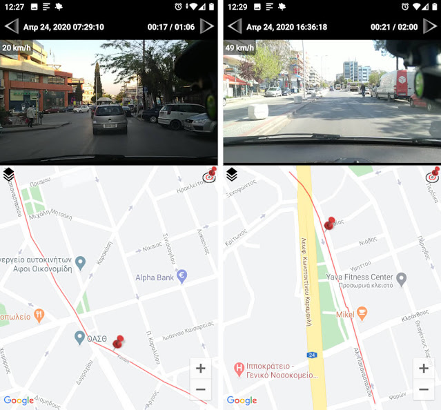 Όταν θα πάμε να ανοίξουμε αυτό το βίντεο, θα δούμε ότι η εφαρμογή προβάλει μαζί του τη διαδρομή που έχουμε κάνει εκείνη τη στιγμή, δείχνοντας σε ένα χάρτη πού ακριβώς έγινε το συμβάν που μας ενδιαφέρει! Εκεί θα δούμε επίσης την ημερομηνία, την ώρα, αλλά και την ταχύτητα με την οποία κινούμασταν! Δεν υπάρχει λοιπόν πιο ξεκάθαρος τρόπος για να καταγράψεις και να αποδείξεις ένα συμβάν με το αυτοκίνητό σου.